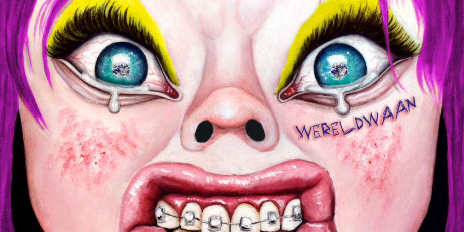 Wereldwaan es la carta de presentación de este nuevo sonido que es, en palabras de Loeke: “crudo, poético y libre”. El título, cuya traducción sería algo así como “mundomanía”, radiografía la ansiedad y la frustración propias de una sociedad multipantalla: “poder contemplarlo todo como un dios pero no ser capaz de hacer nada al respecto porque eres humano, limitado por el tiempo y el espacio”, asegura Cazaerck, que va más allá: “realmente puedes hacer que las cosas cambien, pero la sobrecarga de sufrimiento a veces te hace creer que no vale la pena intentarlo”. Las letras del disco desarrollan esta idea y basculan entre la belleza y el horror presentes en nuestras vidas. Los meses que la cantante pasó en Kiev como enviada del periódico belga De Standaard documentando historias personales durante la guerra de Ucrania le sirvieron para indagar en esta dualidad inherente al ser humano: “el mundo está loco, pero hay belleza en él, también en la situación más horrible”. Esta idea define incluso el nombre de la banda, que juega con la imaginería cristiana para crear un híbrido entre la Virgen María y Judas Iscariote, la madre y el traidor: “implica que existe el bien en el corazón del mal y viceversa”. Esta yuxtaposición de opuestos también se traslada al apartado visual, a cargo del artista gráfico Yves Decamps, quien ya diseñara la portada del EP y a quien la banda describe como “el maestro de la fealdad atractiva”. Según explica Cazaerck: “quería que nuestro debut mostrara una evolución, un crecimiento y quería que eso se reflejara en el arte”. Así, la niña desdentada de EN/EN se ha convertido en una joven, y la agresividad en su cara ha dado paso a la rabia.